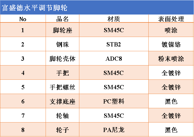 水平調(diào)節(jié)腳輪產(chǎn)品特點(diǎn):